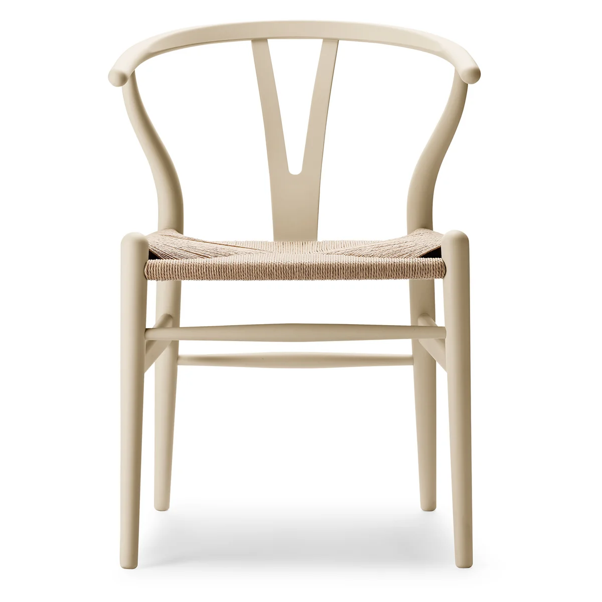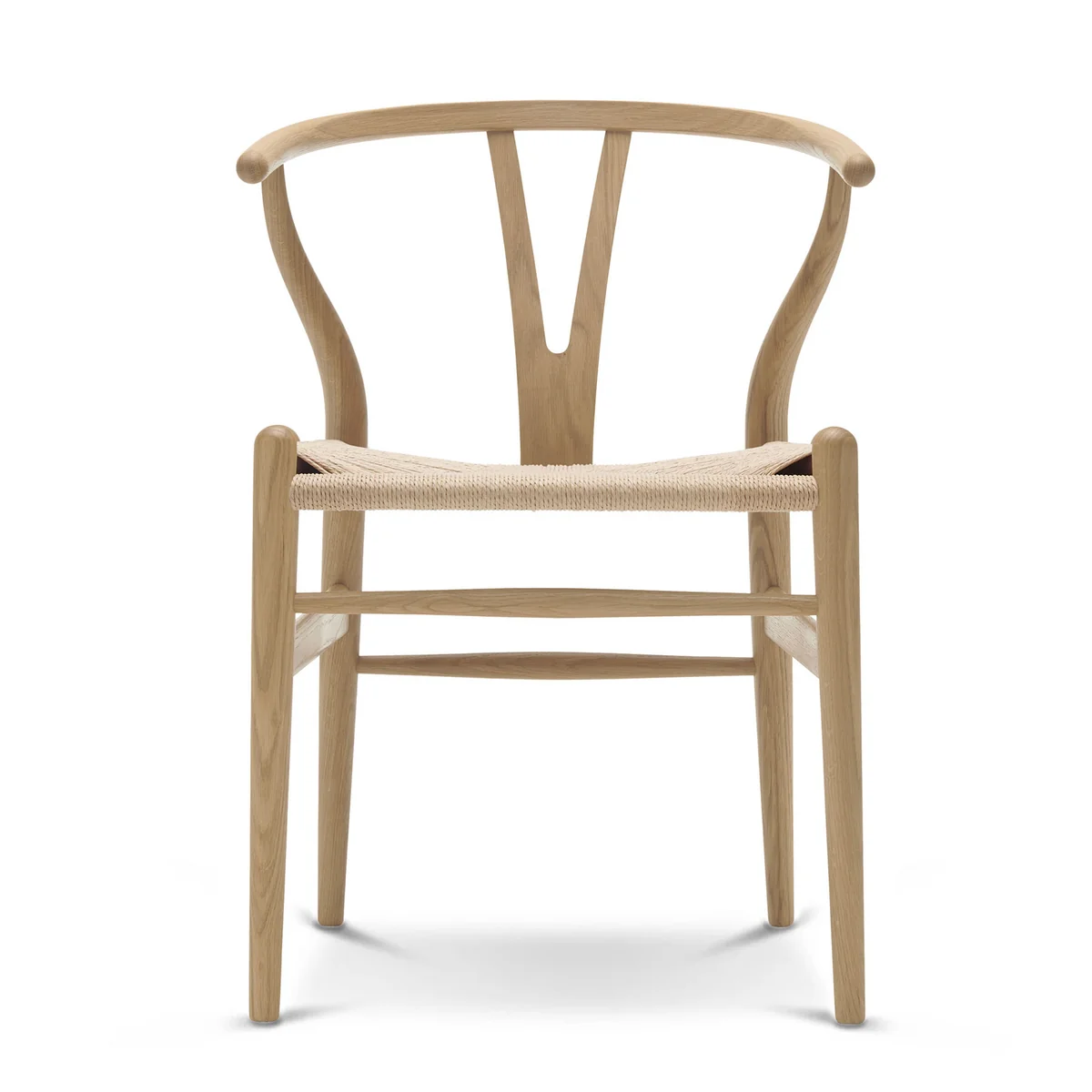 Das charakteristische "Y" in der Rückenlehne des CH24 sorgt für komfortables Sitzen, stabilisiert gleichzeitig die dampfgebogene Rückenlehne und ist natürlich für den Namen des Stuhls verantwortlich. Denn der Wishbone Chair ist auch als Y Chair bekannt. Die sanft gebogene Lehne, die besondere Verstrebung und die handgeflochtene Sitzfläche ermöglichen unterschiedlichste Sitzpositionen, wodurch sich der CH24 für verschiedene Einsatzbereiche eignet.