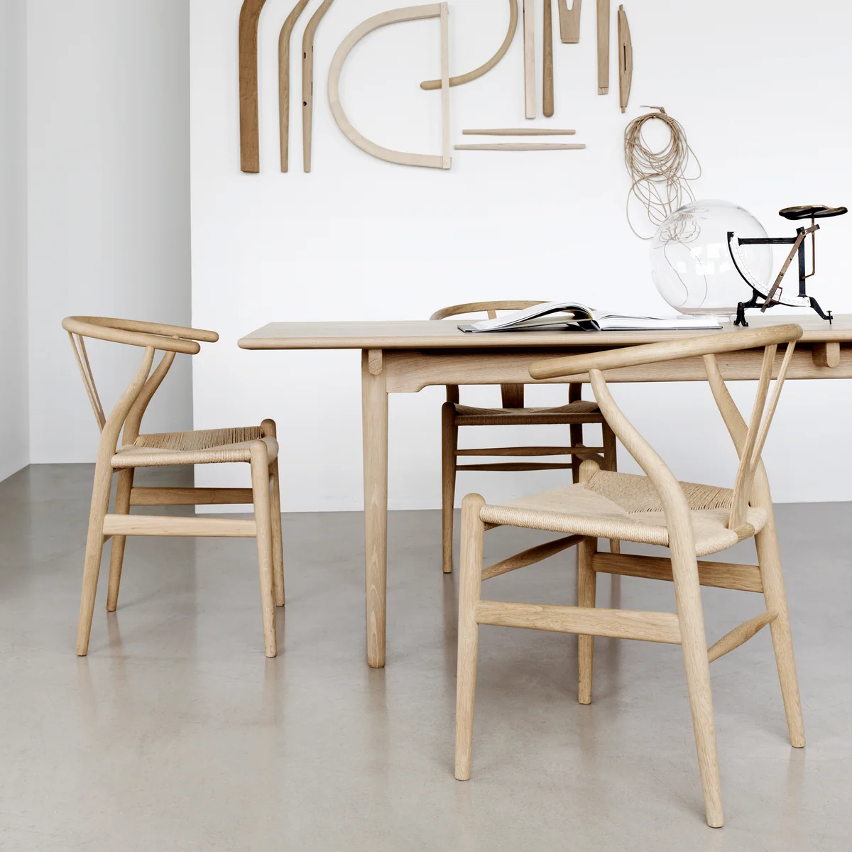 Auch heute besitzt der überraschend komfortable Designklassiker von Carl Hansen & Søn eine leichte und attraktive Ausstrahlung. Der Wishbone Chair ist ein herausragendes Beispiel für das kontinuierliches Streben von Hans J. Wegner nach organischer Schlichtheit, Komfort und Stabilität in den von ihm gestalteten Produkten.