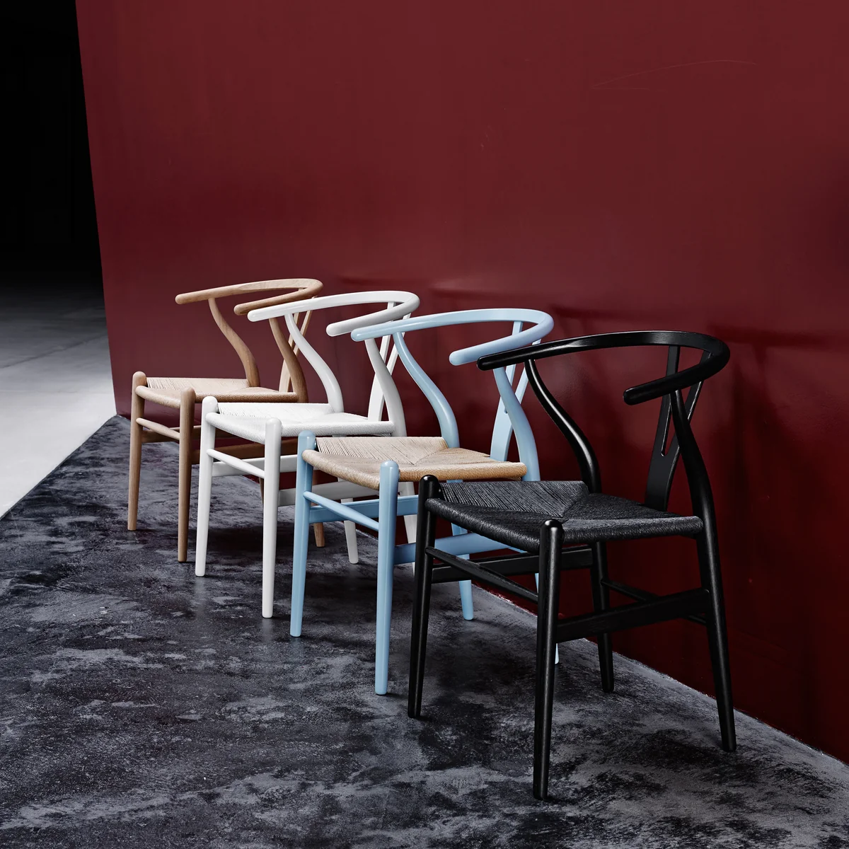 Der CH24 Wishbone Chair von Carl Hansen ist in verschiedenen Ausführungen erhältlich. Exklusiv gibt es von März bis Dezember jeden Monat eine neue Farbe.